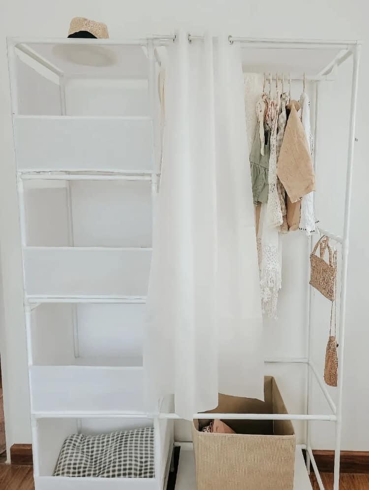 ราวแขวนผ้าสีขาวดีไซน์เรียบๆ จัดมุมเข้ากับบ้านได้ง่าย ตัวนี้ราคาเบ๊า เบา แต่เก็บของจุของได้มากเลยทีเดียว