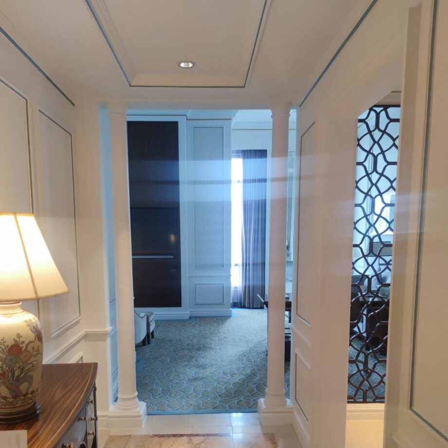 InterContinental Singapore Bugis – The Royal Suite Top Floor. ( Room no. 1601) ฝั่งตรงข้าม ห้อง The presidential suite. ห้องกว้างขวางมากกกกค่ะ มี1 ห้องอาบน้ำ 2ห้องชักโครก 1 ห้องนอน 1 พื้นที่ทำงาน และ 1 พื้นที่ทานอาหาร.